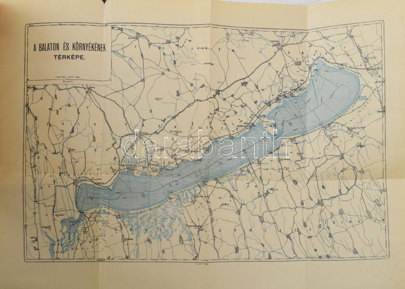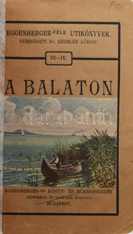 A Balaton és vidéke. Eggenberger-féle utikönyvek III-IV. Bp.,(1909,Eggenberger (Hoffmann és Vastagh), (Arad,Aradi Nyomda Rt.), 167+7 p.+ 1 (A Balaton és környékének térképe, 19x29 cm.) t. Fekete-fehér szövegközti fotókkal illusztrált. Korabeli reklámokkal. Átkötött modern egészműbőr-kötés, bekötött illusztrált elülső papírborítóval, jó állapotban.