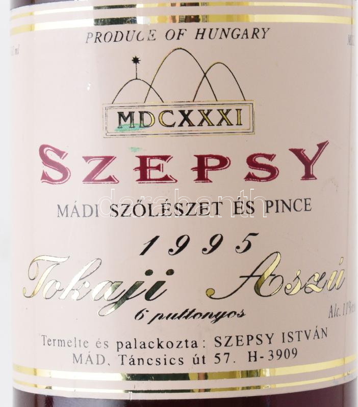 https://www.darabanth.com/en/44-Major-auction/44.1/Art-and-other-collectibles/Vintage-wines-drinks~18207/1995-Szepsy-6-puttonyos-tokaji-aszu-bontatlan-palack-edes-feher-desszertbor-viasszal-lezart-p~II3352282