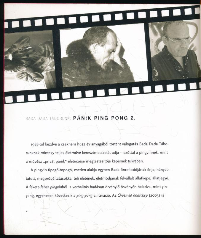 Pánik Ping Pong 2. Bada Dada Táborunk retrospektív pánik kiállítása. Bada Dada (Bada Tibor, 1963-2006) RAJZOS DEDIKÁCIÓJÁVAL! Bevezető: Beke Zsófia. Bp., 2004, Studio 1900 Galéria. Bada Dada műveivel és róla készült fotókkal illusztrált katalógus. Kiadói papírkötés.
