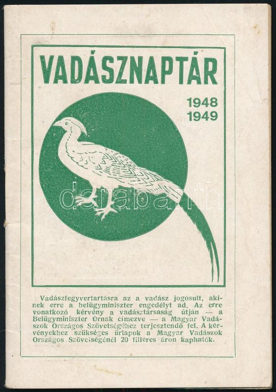 https://www.darabanth.com/en/44-Major-auction/44.1/Books/Books-Hunting~18206/1948-49-Vadasznaptar-32-p-Illusztraciokkal-reklamokkal~II3346396
