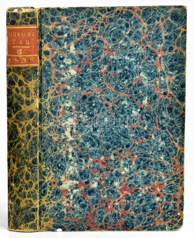 1839 Orvosi Tár. Új Folyamat. Második félév, 1839. Szerk. és kiadják: Bugát Pál, és Flór Ferencz. 1839. jan. 6. - Juni. 23., 1-25. sz. Pest, 1839, Orvosi Tár Hivatala, (Trattner-Károlyi-ny.), VIII+407 p. Korabeli kartonált papírkötés, a gerincen piros címkével, rajta aranyozott címfelirattal, kissé kopott borítóval, a címlapon bélyegzéssel, kissé foltos lapokkal.