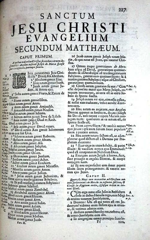 Biblia Sacra Vulgatae Editionis Sixti V. Pontificus Maximi Jussu Recognita Atque Edita, Versiculus Distincta, Cum Indice Biblioco, & Lectionum ad Evangeliorumn pro omnibus Dominicis & Festis per Annum. Reverendissimi et celsissimi S. R. I. principis ad Domini D. Marquardi Sebastiani Imperialis Ecclesiar Bambergensis Episcopi authoritate, post accuratam cum Vaticna Editione collationem. [Bamberg] Bambergae Recusa, 1693. Sumptibus Wolfgangi Mauritii Endteri in Norimberga. 2 t. (díszcímlap + kétszínnyomású címlap) + [20] + 509 + [3] p.; 522 p. Folio. Latin nyelvű, katolikus bibliakiadásunk a Szent Jeromos által készített Vulgata-fordításon alapszik, melyet a tridenti zsinat az egyedül hivatalos latin változatként ismert el. Az összes későbbi nemzeti nyelvű katolikus bibliafordítás ezen a nagy becsű, 1543-ban kanonizált, V. Sixtus pápa idején bemutatott változaton alapszik. 1693-ban készült Vulgata-kiadásunk a nürnbergi Wolfgang Moritz Endter barokk könyvnyomtató mester műhelyében készült, rendkívül részletgazdag, allegorikus díszcímlapját Cornelius Nicolaus Schurtz (1630-1690) rézmetsző mestertől való. Bibliakiadásunk oldalszámozása érdekes módon nem az Újszövetség könyveivel, hanem az ószövetségi Ézsaiás könyvével indul újra. Ennek megfelelően kötetünk két, részletgazdag rézmetszete a Genezis és Ézsaiás könyvének nyitóoldalát díszíti. Valamennyi könyv első fejezetek élén fametszetű iniciálék. Az Újszövetség után található Ezsdrás harmadik és negyedik könyve, valamint Szent Jeromos bevezetője, a kötetet részletes bibliai tartalomjegyzék zárja. Példányunk 12 levelén apró lapszéli pótlás, három levelén apró javítás, első nyomtatott oldalán régi tulajdonosi bélyegzés, címoldalán és utolsó oldalán régi gyűjteményi bélyegzés. Példányunkat egykor Szalai Veronika magyar könyv- és grafikai restaurátor hozta rendbe. VD17 1:058998B. Poss.: Ernst Lajos [Ernst Lajos (1872-1937) műgyűjtő, mecénás, a Nemzeti Szalon és az Ernst Múzeum alapítója. Gyűjteményének javát hazai múzeumok vásárolták meg.], Esztergomi Érseki Könyvtár. Négy bordára fűzött, restaurált korabeli pergamenkötésben, a kötéstáblákon a pozsonyi főegyházmegyei könyvtár aranyozott köremblémáival. Szép példány.