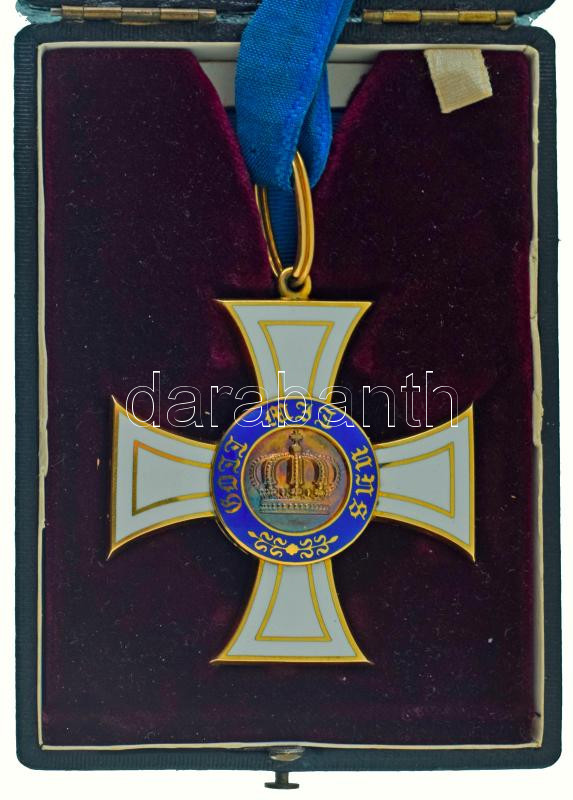 Német Birodalom / Poroszország DN(~1900) "Királyi Koronarend" (nagy koronás kiadás) II. osztályú részben zománcozott Au + Ag kereszt kitüntetés nyakszalagon, eredeti dobozában, benne az eredeti szalaggal! A kereszt alján "N" gyártói jelzéssel (Neuhaus & Sohn, Berlin), (19,25g/52x56mm) T:AU, patina / German Empire / Prussia ND(~1900) "Royal Order of the Crown" (huge crown issue) 2nd class partially enamelled Au + Ag cross decoration on neck ribbon, in original box with original ribbon included! With "N" maker's mark at the bottom of the cross (Neuhaus & Sohn, Berlin), (19,25g/52x56mm) C:AU, patina