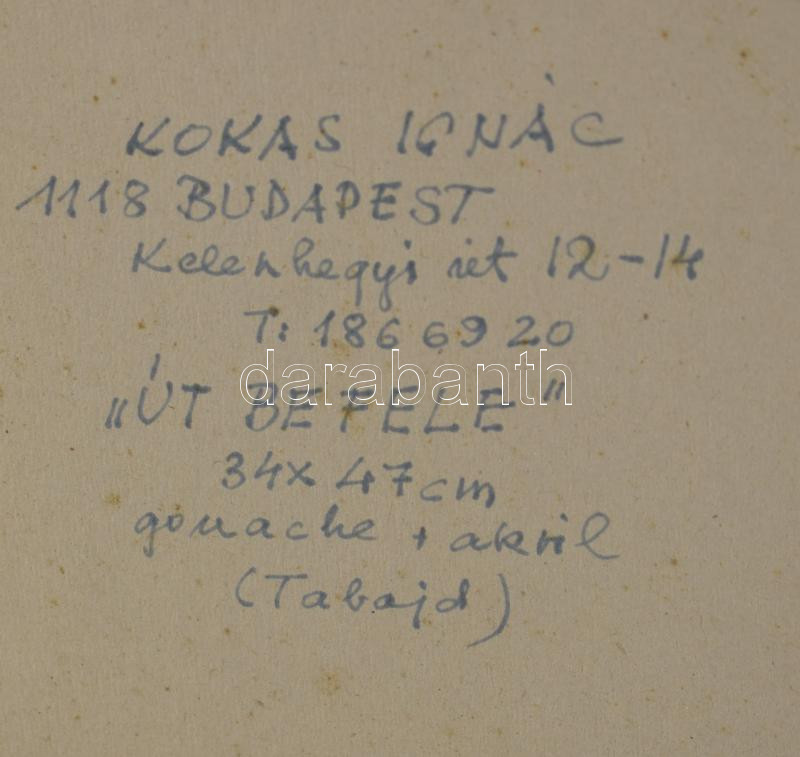 Kokas Ignác (1926-2009): "Út befelé". Gouache, akril, papír.... https://www.darabanth.com/en/44-Major-auction/44.1/Paintings-and-graphics/Contemporary-paintongs-and-graphics~17949/Kokas-Ignac-1926-2009-Ut-befele-Gouache-akril-papir-Jelezve-balra-lent-Kokas-I-Hatol~II3263840