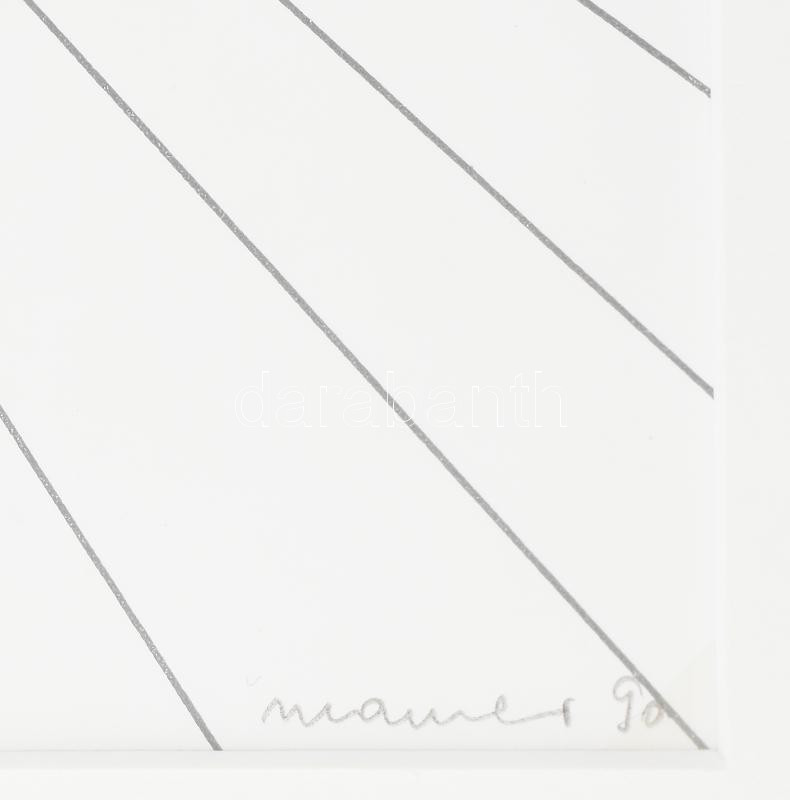 Maurer Dóra (1937-): Quod libet (Cím nélkül), 1990. Szitanyomat, fotó, kollázs, papír. Jelezve jobbra lent: Maurer 90. Számozott: 132/160. 30x21,5 cm. Üvegezett fakeretben. / Dóra Maurer: Quod libet (untitled), 1990. Screenprint, photo, collage on paper. Signed lower right: Maurer 90. Numbered: 132/160. 30x21,5 cm. Framed