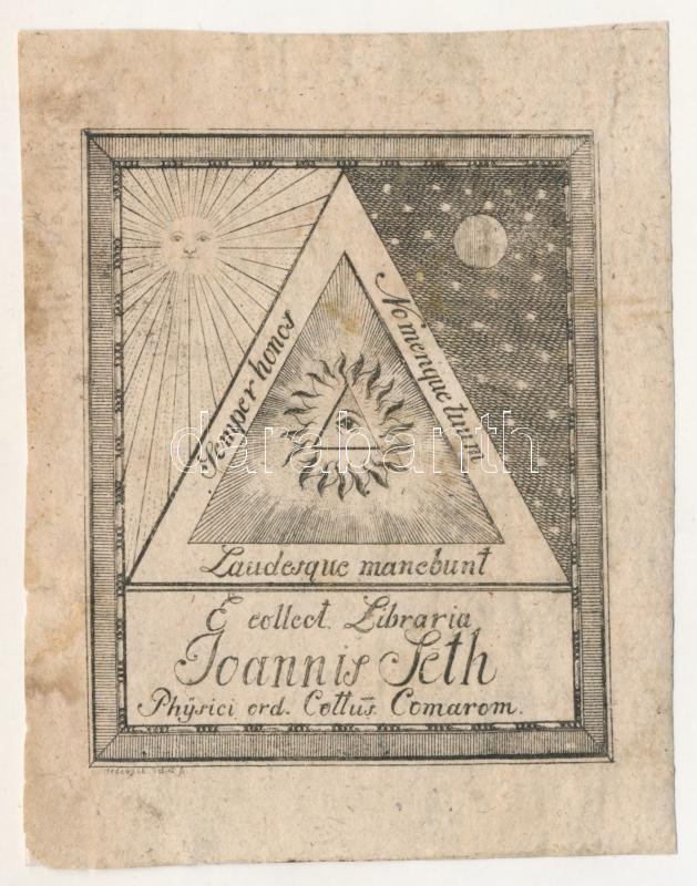 Hederich Frigyes (?-1807): E collect. Libraria Joannis Seth Physici or... https://www.darabanth.com/en/44-Major-auction/44.1/Paintings-and-graphics/Ex-libris-small-graphics~18333/Hederich-Frigyes-1807-E-collect-Libraria-Joannis-Seth-Physici-ord-Cottus-Comarom-Seth-Jano~II3337335