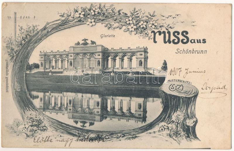 1907 Wien, Vienna, Bécs; Schönbrunn, Gloriette. Gruss aus Wien / Art N...
