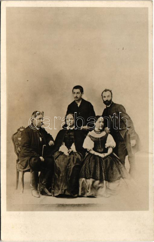 Description: 1942 Nagyszalonta, Salonta; Családi kép a Múzeumban, Arany János, Aranyné Ertsey Júlia, Arany László, Széllné Arany Júlia, Széll Kálmán / Arany's family photo in the museum