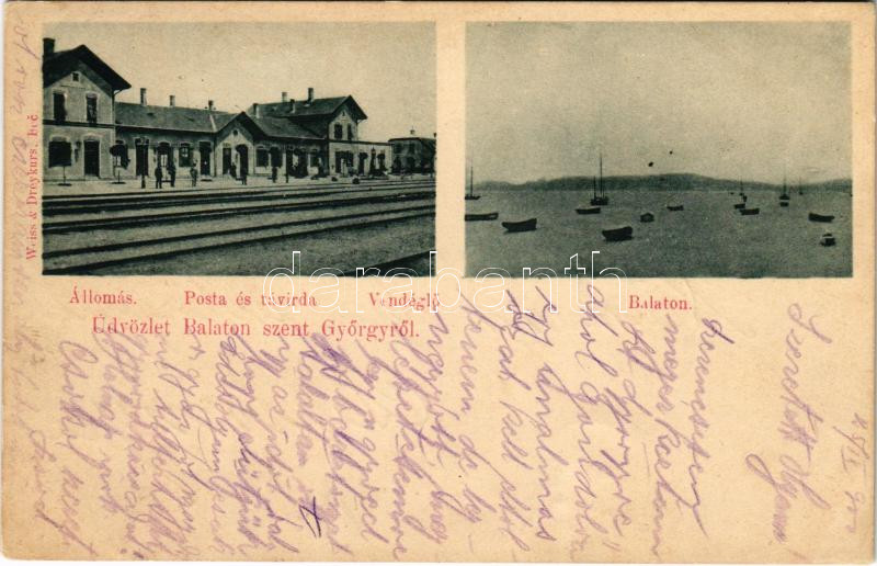 1900 Balatonszentgyörgy, vasútállomás, posta és távírda, vendéglő, Balaton. Weiss & Dreykurs