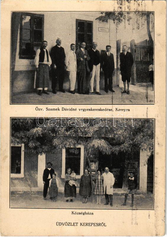 Kerepes (Pest), Községháza, Özv. Szamek Dávidné üzlete. Károlyi Á. fén...