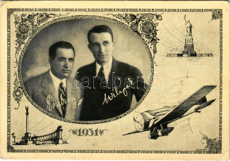 Description: 1931 Endresz György és Wilczek (Magyar) Sándor "Justice for Hungary" óceánrepülésének emlékére. Kiadja a Magyar Aero szövetség / Hungarian pilots, memorial card for their flight across the ocean. Irredenta Art Nouveau postcard (EK)