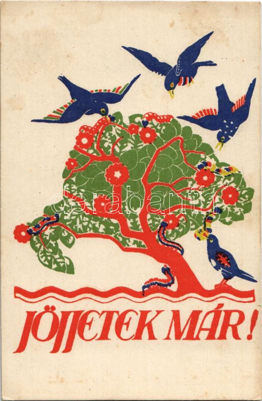 Description: Jöjjetek már! Kiadja a "Szózat" Magyarország Területi Épségének Védelmi Ligája napilapja. Besskó Grafikai Műintézete / Hungarian irredenta propaganda, Trianon (fl)