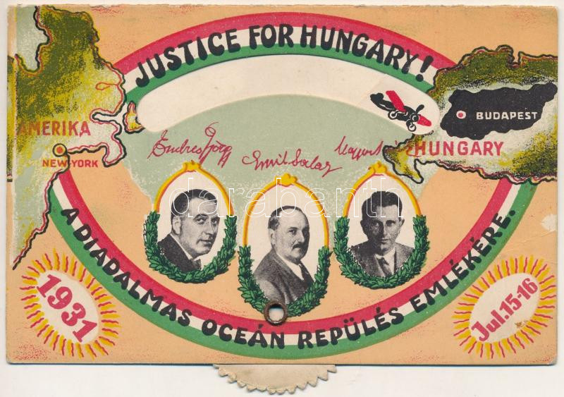 'Justice for Hungary!' A diadalmas óceán repülés emlékére; M... https://www.darabanth.com/en/44-Major-auction/44.1/Postcards/Irredenta~18237/Justice-for-Hungary-A-diadalmas-ocean-repules-emlekere-Magyar-Sandor-Endresz-Gyorgy-S~II3062761