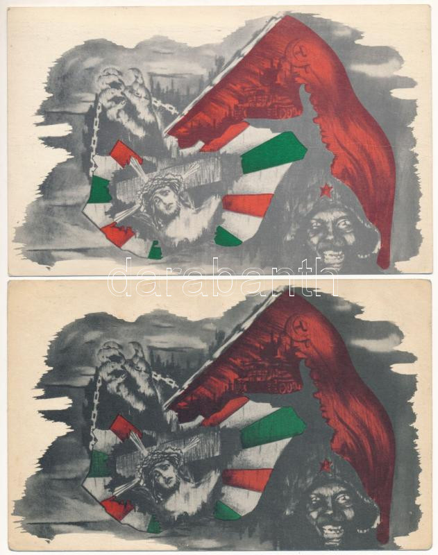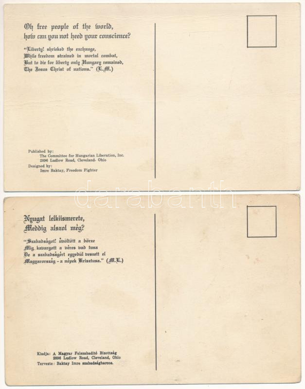 Nyugat lelkiismerete, meddig alszol még? Kiadja a Magyar FelszabadÃtó Bizottság, Cleveland (Ohio) / Hungarian irredenta, anti-Bolshevist propaganda - 2 db képeslap (angol és magyar nyelvű kiadások) / 2 postcards (English and Hungarian editions)