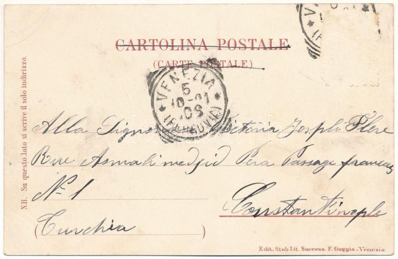 Venezia, Venice; La regata (Arrivo e dispensa dei premi) / The Historic Regatta, arrival and prize distribution ceremony. F. Guggua litho (Rb)