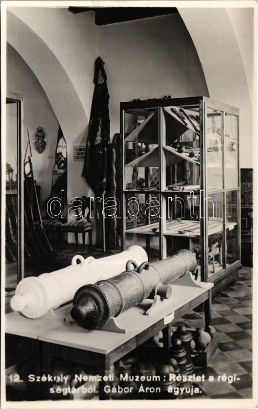 Description: Sepsiszentgyörgy, Sfantu Gheorghe; Székely Nemzeti Múzeum, belső, részlet a régiségtárból, Gábor Áron ágyúja / Muzeul National Sacuesc / Székely National Museum interior, cannon