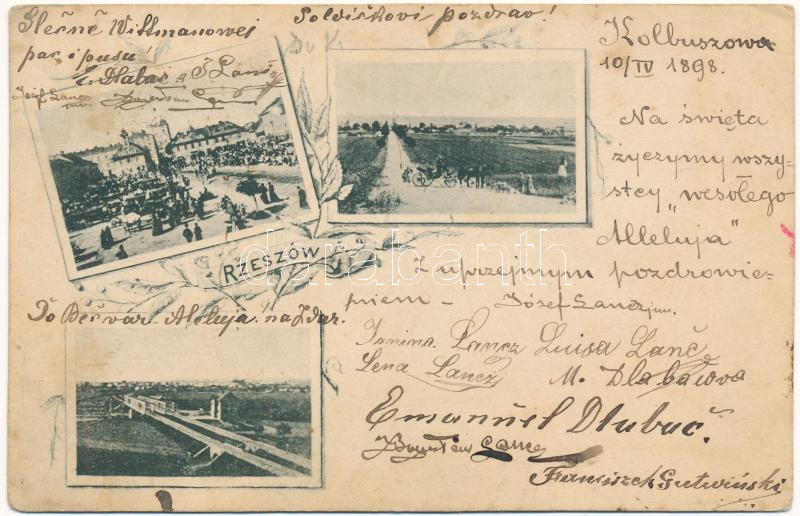 1898 (Vorläufer) Rzeszów, Rajsze; market square, bridge, road with hor...