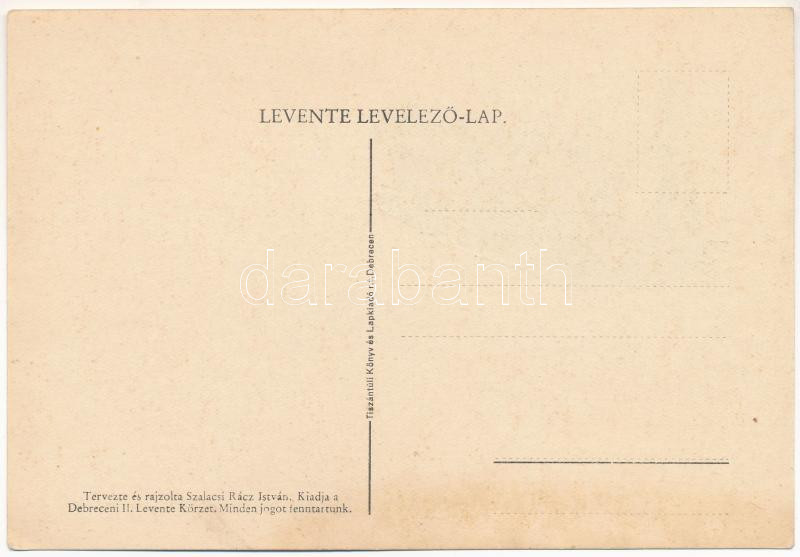 Szebb Jövőt! Magyar Leventemozgalom irredenta propaganda képeslapja. Tervezte és rajzolta Szalacsi Rácz István. Debreceni II. Levente Körzet kiadása / Hungarian Levente Associations irredenta propaganda postcard s: Szalacsi Rácz István