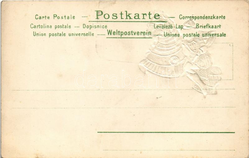 St. Georg / Szent György, a cserkészek védőszentje / Saint George, the patron saint of scouting. Emb. golden litho (lyuk / pinhole)