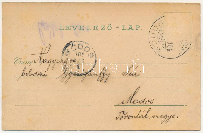 1900 Modor, Modra; mozaiklap 8 képpel: Deák tér, régi városi kapu, evangélikus templomok, Natalia villa, Harmónia nyaralótelep, Erzsébet villa, Magyar Királyi Állami Tanítóképezde. Schwidernoch Károly műintézete (Bécs) / multi-view postcard with 8 images: square, old town gate, Lutheran church, villas, trainig school. Art Nouveau, floral, litho (kis szakadások / small tears)