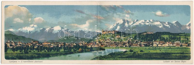 Ljubljana, Laibach; Z kamniskami planinami / Laibach mit Steiner Alpen / 2-tiled folding panoramacard (worn at fold)