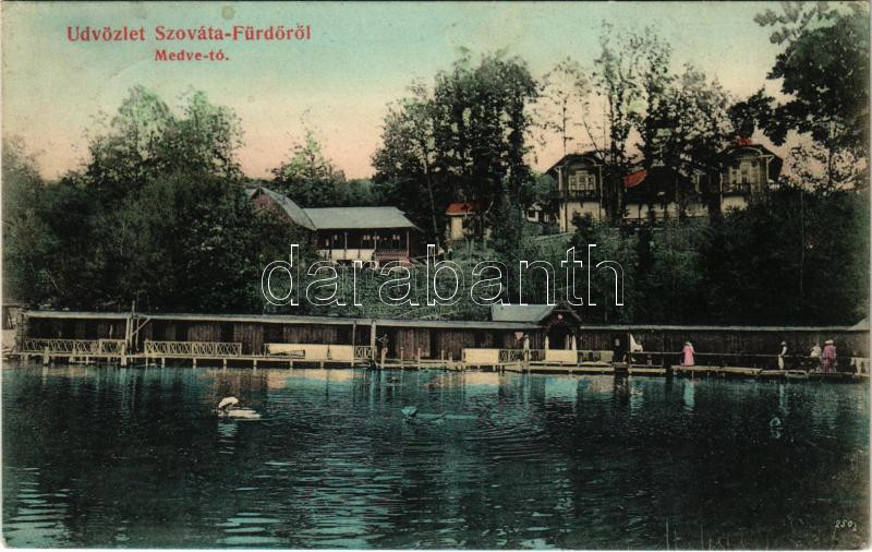 1907 Szováta, Sovata; Medve-tó, fürdőzők. Hönig Bernát kiadása / lake, bathers (EK)