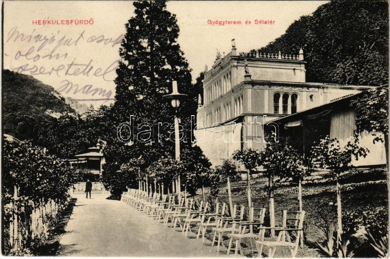 1911 Herkulesfürdő, Baile Herculane; gyógyterem és sétatér / spa, promenade
