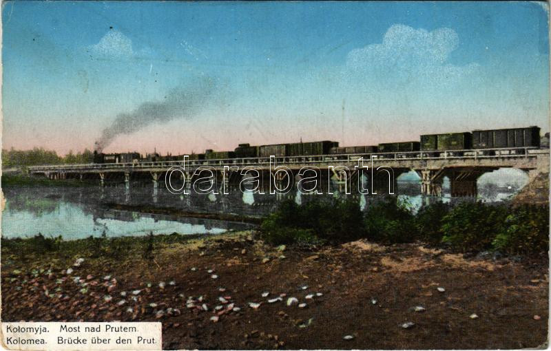 1915 Kolomyia, Kolomyja, Kolomyya, Kolomea; Most nad Prutem / Brücke über den Prut / railway bridge with train, locomotive (EK)
