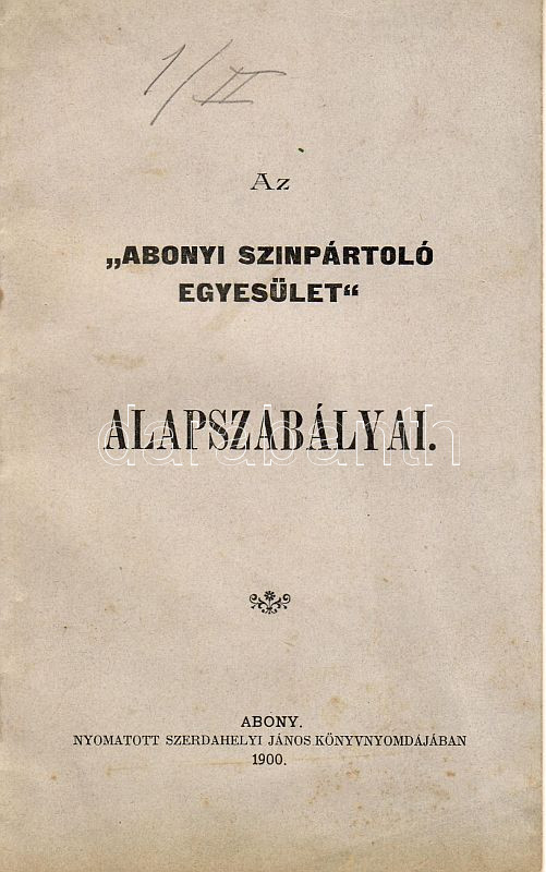 https://www.darabanth.com/en/44-Online-auction/44.0/Other-collectibles/~253/1900-Az-abonyi-szinpartolo-egyesulet-alapszabalyai~II87023