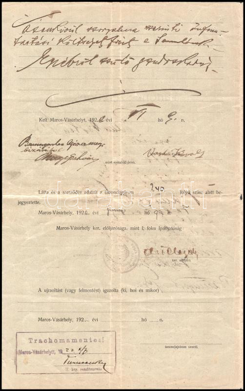 https://www.darabanth.com/en/440-Online-auction/440.0/Art-and-other-collectibles/Documents~500020/1920-Marosvasarhely-TC3A2rgu-Mures-tanonc-szerzodes-Baumgarten-Geza-muszeresz-es-Vajda-Ka~II2867752