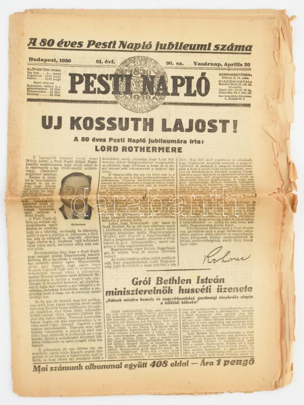 https://www.darabanth.com/en/440-Online-auction/440.0/Art-and-other-collectibles/Printed-Materials~500035/1930-A-80-eves-Pesti-Naplo-jubileumi-szama-kisebb-lapszeli-serulesekkel~II2895419