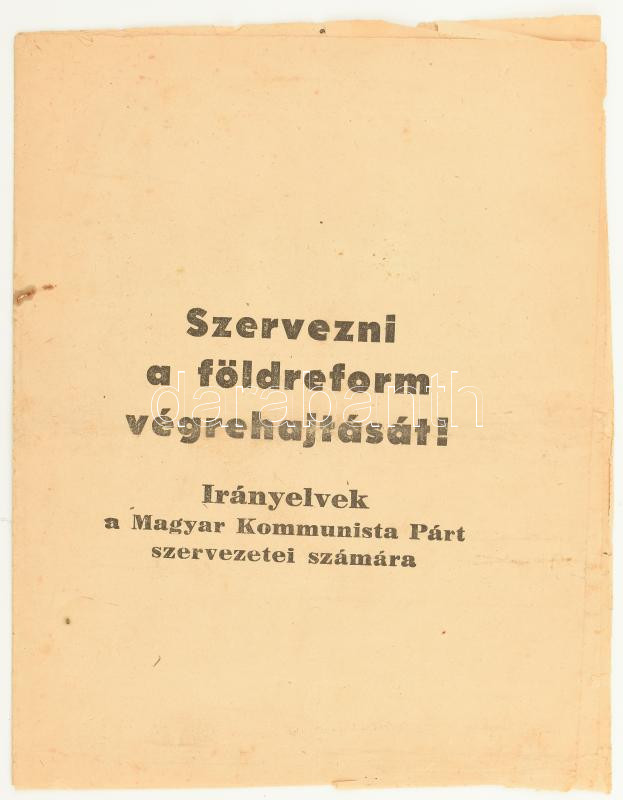 1945 Szervezni a földreform végrehajtását! Irányelvek a Magyar Komunis... https://www.darabanth.com/en/440-Online-auction/440.0/Art-and-other-collectibles/Printed-Materials~500035/1945-Szervezni-a-foldreform-vegrehajtasat-Iranyelvek-a-Magyar-Komunista-Part-szervezetei-sza~II2893628
