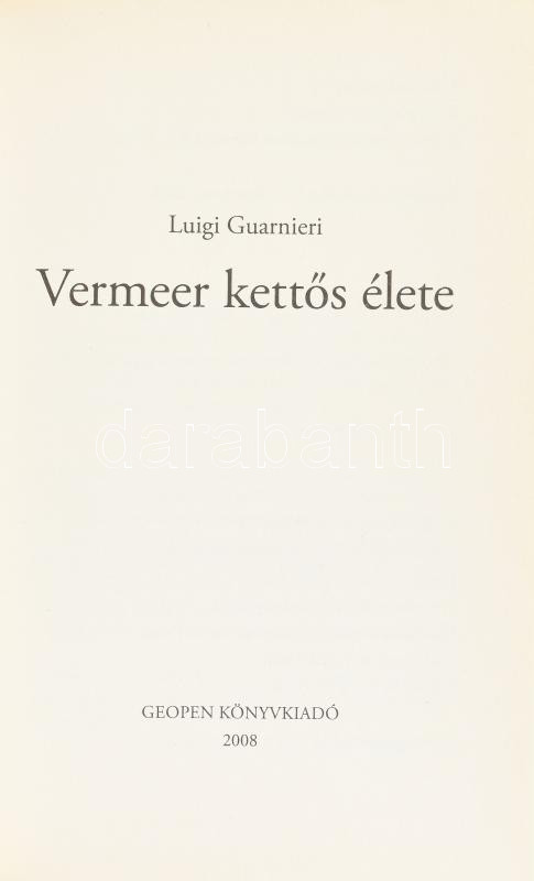 Luigi Guarnieri: Vermeer kettős élete. A 20. század legnagyobb képhamisításának története. Ford.: Todero Anna. Bp., 2008, Geopen. Kiadói papírkötés.