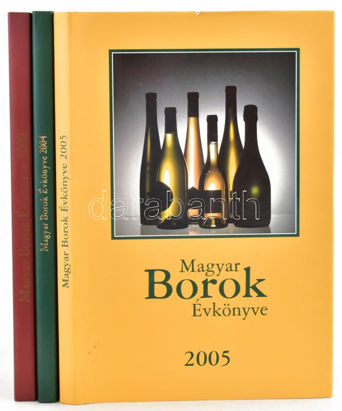 Magyar Borok Évkönyve gyűjtemény. Magyar Borok Évkönyve 2003, 2004, 20... https://www.darabanth.com/en/440-Online-auction/440.0/Books/Books-Gastronomy-and-Gardening~500044/Magyar-Borok-Evkonyve-gyujtemeny-Magyar-Borok-Evkonyve-2003-2004-2005-Bp-2002-2004-Cont~II2890229