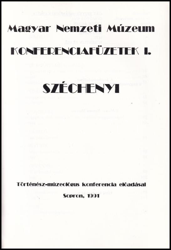 Gát Eszter-Körmöczi Katalin (szerk.): Széchenyi (Magyar Nemzeti Múzeum konferenciafüzetek I.). Bp., 1991, Magyar Nemzeti Múzeum. 114 p. Fekete-fehér képekkel illusztrált. Kiadói papÃrkötés.