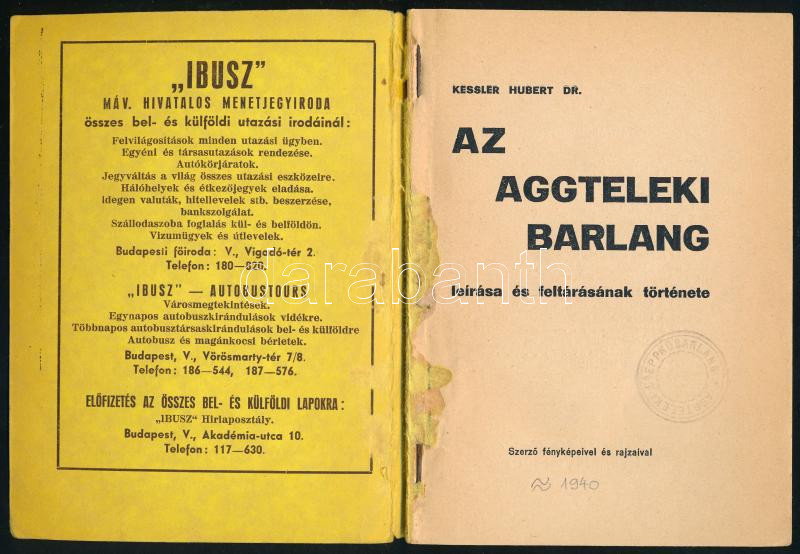 Kessler Hubert: Az aggteleki cseppkőbarlang leírása és feltárásának tö... https://www.darabanth.com/en/440-Online-auction/440.0/Books/Books-Travelling-Local-History~500037/Kessler-Hubert-Az-aggteleki-cseppkobarlang-leirasa-es-feltarasanak-tortenete-Szerzo-fen~II2889238