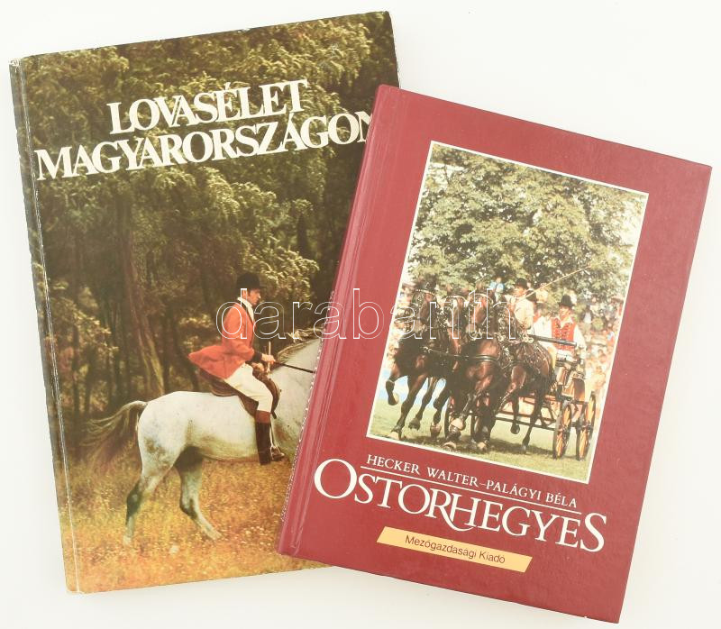 2 db lovassport témájú könyv: Hecker Walter - Palágyi Béla: Ostorhegyes. (Könyv a fogathajtásról). Bp., 1987, Mezőgazdasági Kiadó. Kiadói kartonált papírkötés. + Sz. Bozsik Nóra, Dr. Várady Jenő: Lovasélet Magyarországon. Bp., 1976, IPV. 192 p. Gazdag képanyaggal illusztrálva. Kiadói kartonált papírkötés, kissé kopott borítóval, egyébként jó állapotban.