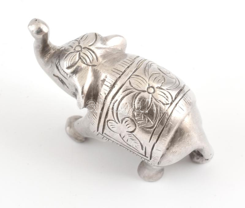 Ezüst (Ag) elefánt, jelzett, 4,2 cm, nettó: 40,14