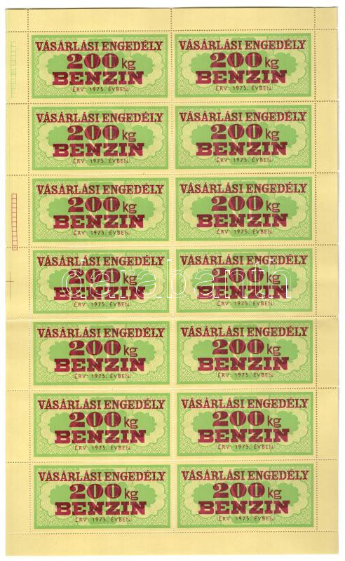 1975. "Vásárlási engedély - 200kg Benzin" (14x) bélyeg, teljes ív T:II