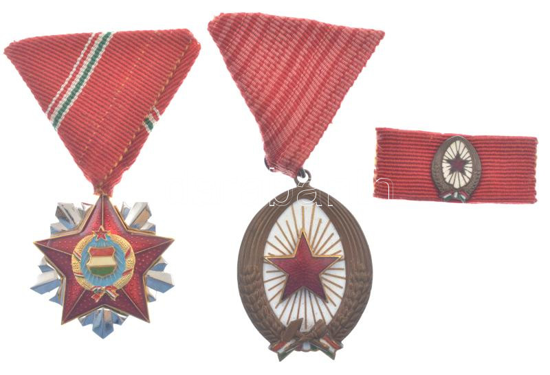 Description: 1964. "Munka Érdemrend" bronz fokozata bronz zománcozott kitüntetés mellszalagon, miniatűrrel szalagsávon + 1966. "Szocialista Hazáért Érdemrend" zománcozott, ezüstözött kitüntetés mellszalagon T:UNC