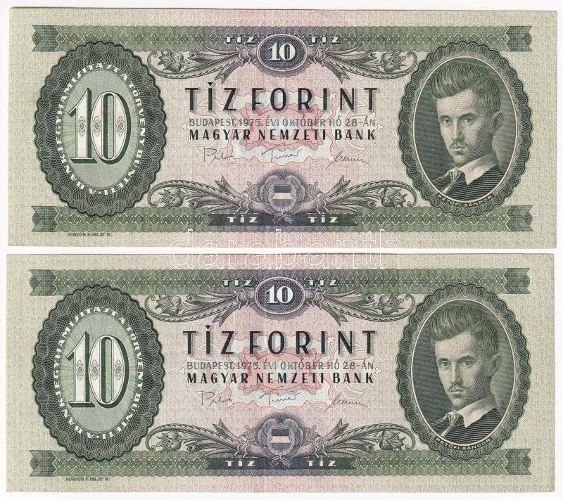 1975. 10Ft (2x) sorszámkövetők "A 119 125963 - A 119 125964" T:F szép papír