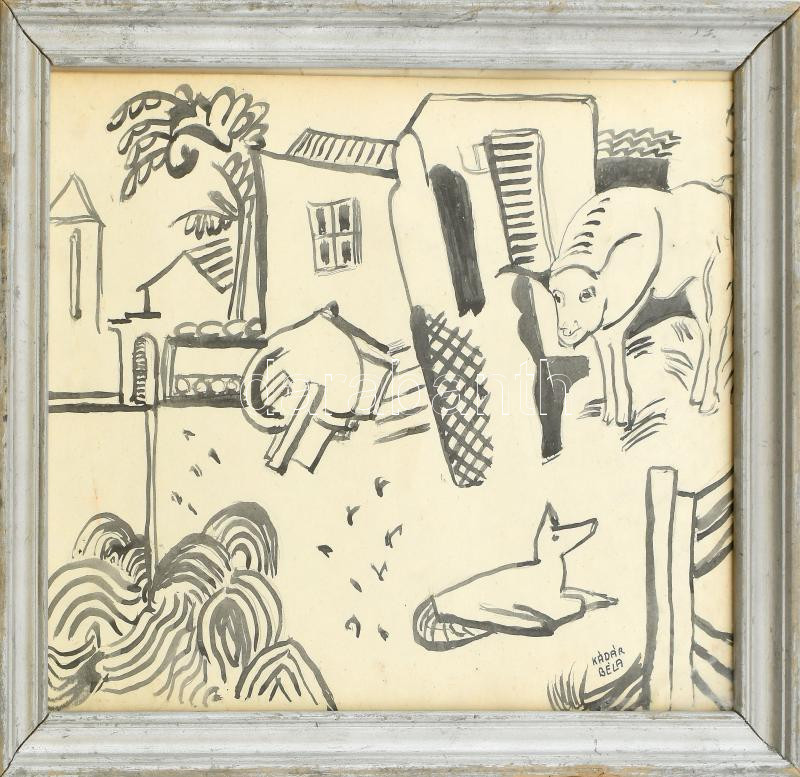 https://www.darabanth.com/en/440-Online-auction/440.0/Paintings-and-graphics/Paintings-and-graphics-quot-signedquot-or-quot-without-signquot-~500002/Kadar-Bela-jelzessel-Vazlat-II-Tus-papir-Uvegezett-serult-keretben-28x34cm~II2886932