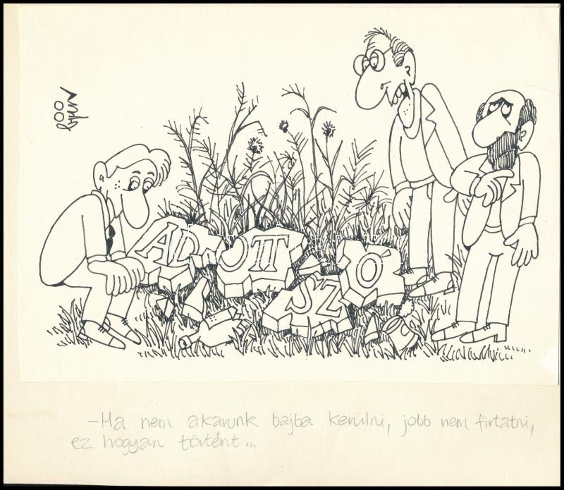 Balázs Piri Balázs (1937-2014): Adott szó (karikatúra), 1990. Tus, pap... https://www.darabanth.com/en/440-Online-auction/440.0/Paintings-and-graphics/Paintings-and-graphics~500001/Balazs-Piri-Balazs-1937-2014-Adott-szo-karikatura-1990-Tus-papir-Jelzett-Papirra-kas~II2887124