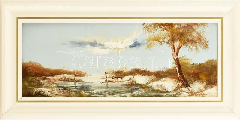 Bocsák Krisztina (1964- ): Magányos fa. Olaj, farost, jelzett, díszes fakeretben, hátoldalán címkével, 20×50 cm