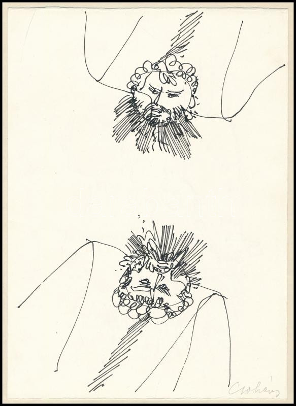 Csohány Kámán (1925-1980):. Vita. tus, papír, jelzett, megjelent Obersovszky Gyula:Játékos istenek. c. 15x22 cm