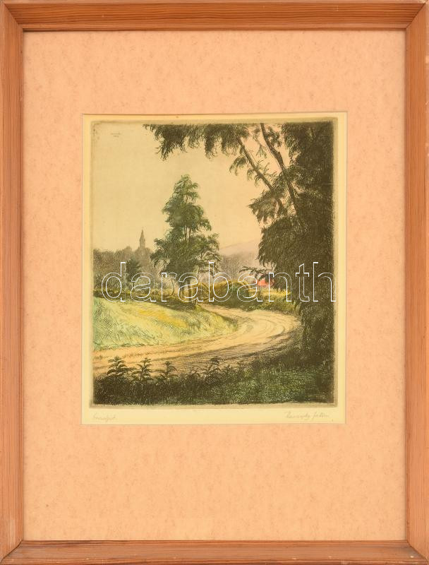 Kaveczky Zoltán (1897-1965): Országút, színezett rézkarc, papír, jelze...
