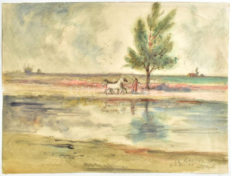 Komjáti-Wanyerka Gyula (1894-1958): Alföldi táj lovakkal. Akvarell, ce... https://www.darabanth.com/en/440-Online-auction/440.0/Paintings-and-graphics/Paintings-and-graphics~500001/Komjati-Wanyerka-Gyula-1894-1958-Alfoldi-taj-lovakkal-Akvarell-ceruza-papir-jelzett-Komj~II2891811