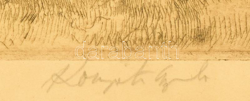 Komjáti-Wanyerka Gyula (1894-1958): Rőzseszedő. Színezett rézkarc, pap...