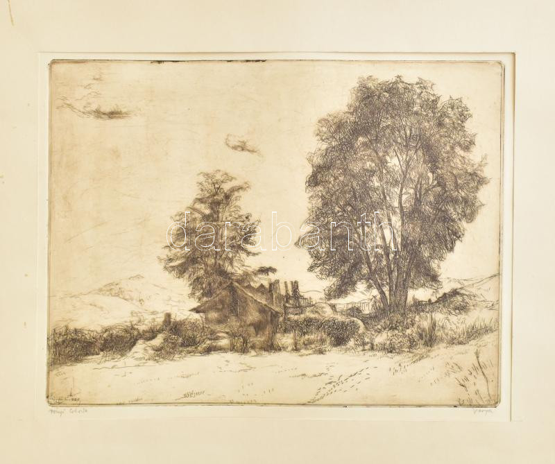 Varga Nándor Lajos (1895-1978): Pónyi csárda. Rézkarc, papír, jelzett,...