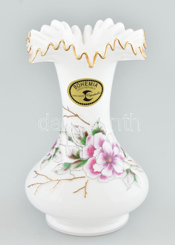Bohemia tejüveg váza, hibátlan, címkével jelzett, m: 16 cm
